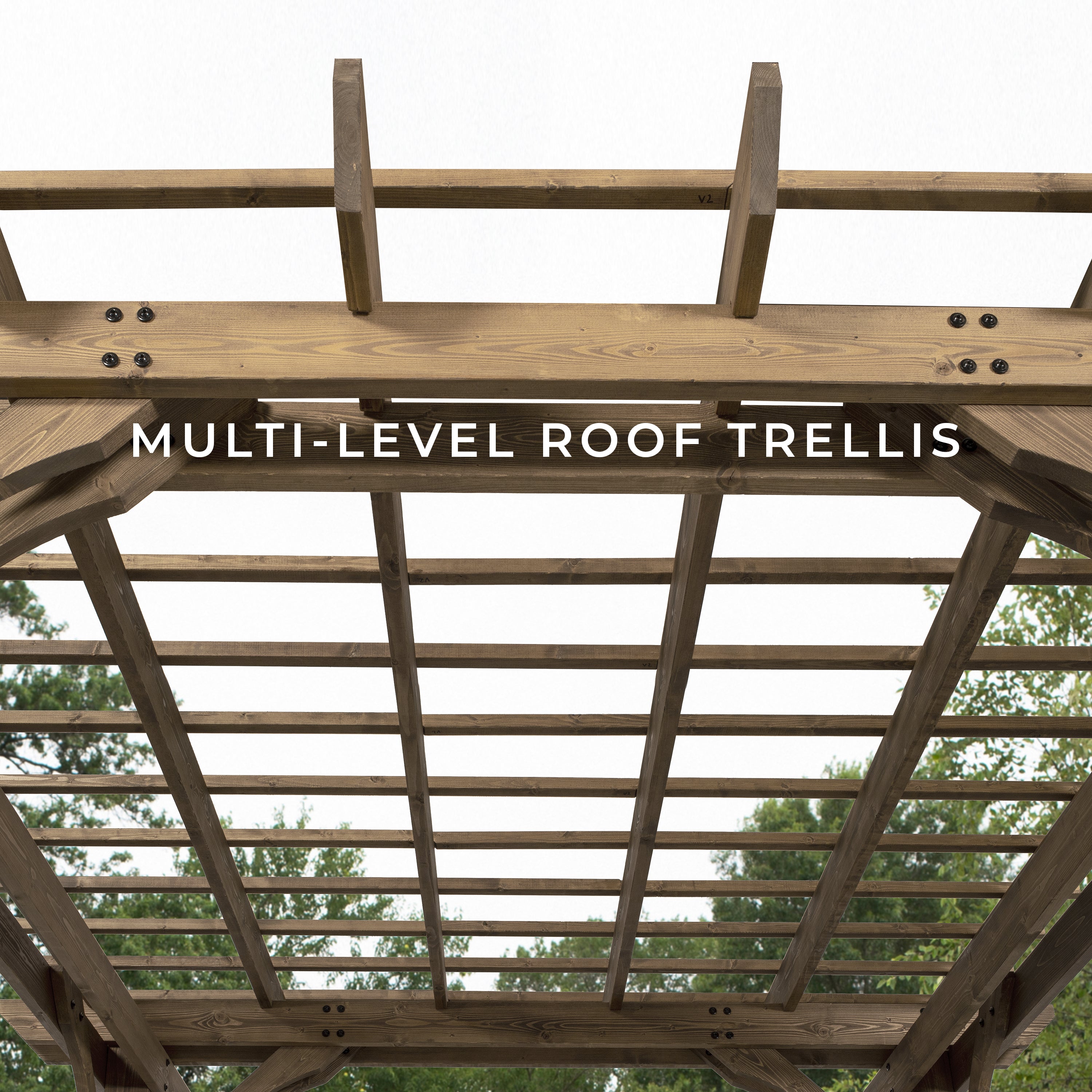 • TIMELESS DESIGN: Multi-level roof trellis for a beautiful time-honored appearance in a welcoming Rustic Finish